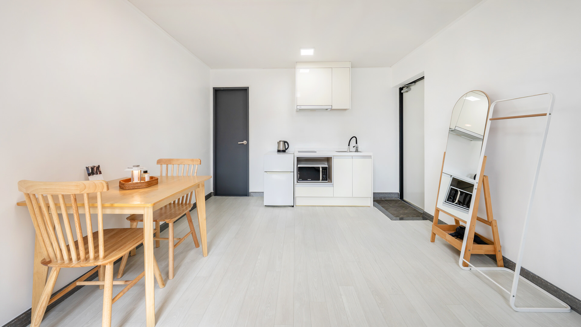- 집기품목 : 금연, 와이파이, TV, 에어컨, 냉장고, 인덕션, 전자레인지, 커피포트, 취사시설/도구, 드라이기, 샴푸, 린스, 바디워시, 세면도구, 타월, 욕실용품