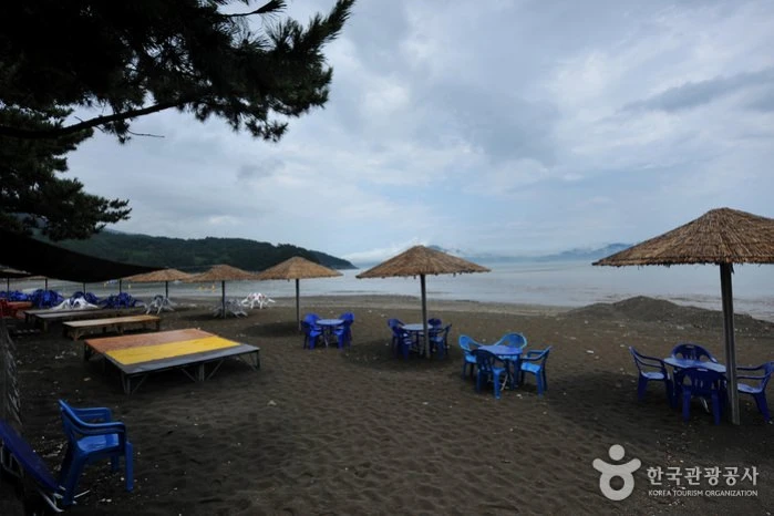 여수엑스포역에서 해안도로를 타고 북쪽으로 3km쯤 떨어진 곳에 위치해 있어서 교통이 편리하다. 길이 540m, 폭 25m 정도의 백사장과 평균수온 25℃로 따뜻해서 해수욕장으로는 최적지이다. 특히, 이곳의 백사장에 깔린 검은모래는 원적외선의 방사열이 높아서 모세 혈관을 확장시켜 혈액순환을 돕고 땀의 분비를 촉진시켜 준다고 한다. 자료출처 : 대한민국 구석구석(http://korean.visitkorea.or.kr) 펜션에서 차량으로 약 11분, 5.4km